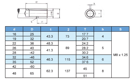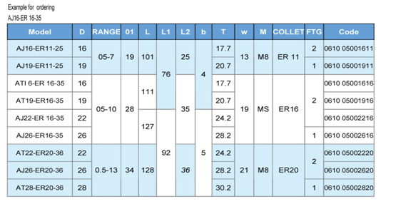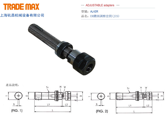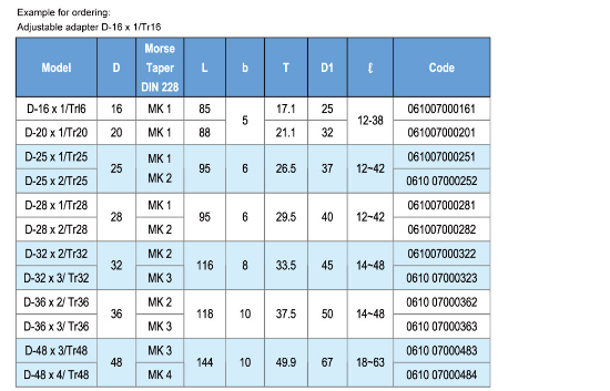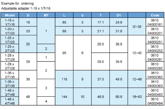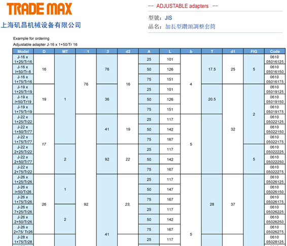 • Product description: ER bit adjusting sleeve: AJ - ER JIS bit adjusting sleeve: J - 16 * 1 / Tr16... 19... 22... 26... 28... 32... 35... 42... J - 48 * 1 / Tr48 ISO bit adjusting sleeve: 1-16 * 1 / Tr16... 20... 25... 2