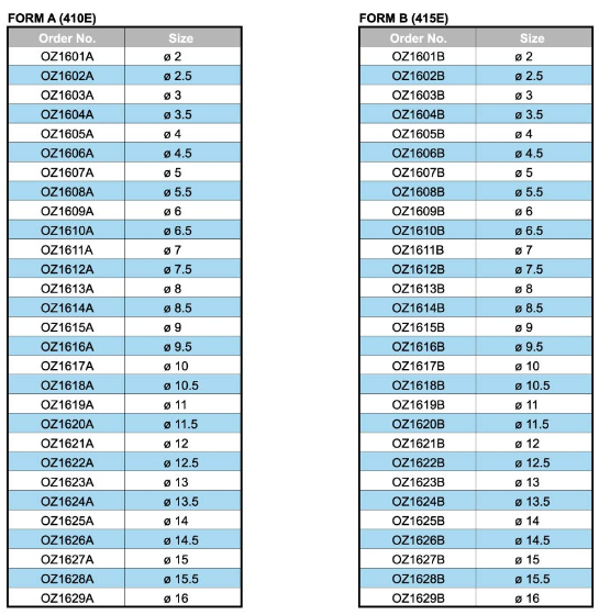 • Product description: OZ collet series OZ SPRING COLLET SYSTEM: 1.HRC : 47° 2.COLLET CLASS : Standard 3.CLAMPING RANGE : ≦0.2mm OZ SPRING COLLET SYSTEM FORM B: 1.HRC : 47° 2.COLLET CLASS : Standard 3.COLLET FORM